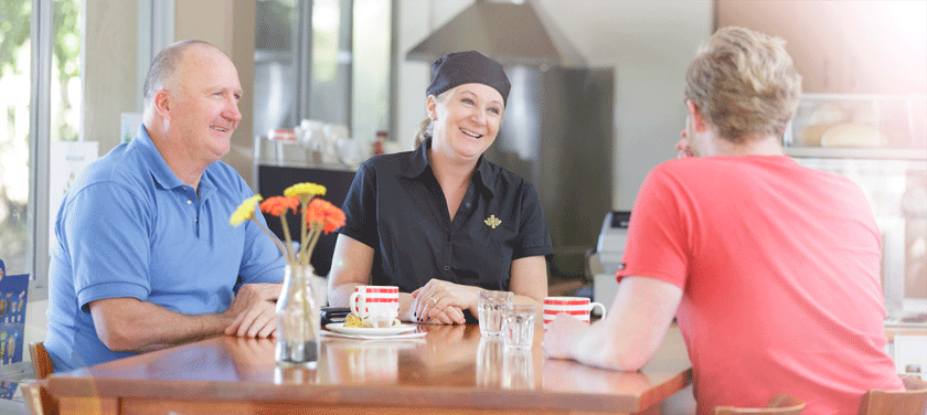 Clients are encouraged to have their meals in our central spacious dining room. Family and friends are welcome; an EFTPOS machine is available for payment in the dining room.